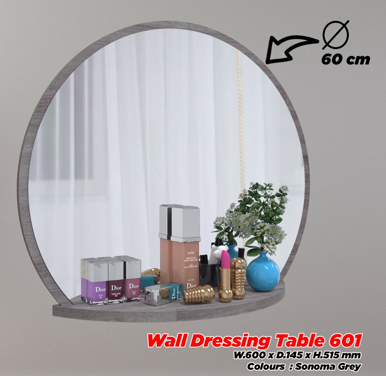 WALL DRESSING TABLE 601 SONOMA GREY Ø 60 CM